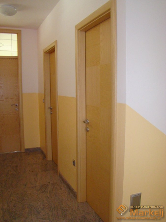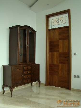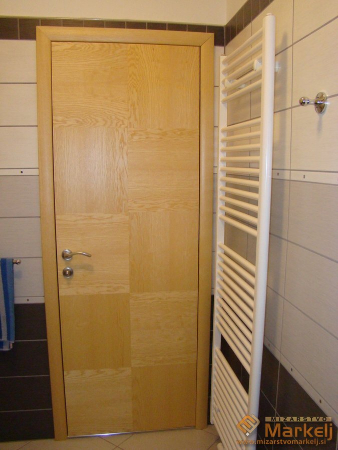 Vrata jesen in oreh z zahtevnim kvadratastim vzorcem furnirja. Podboj je obojestransko zaobljen – bombiran, vrata vsebujejo magnetno ključavnico in skrita nasadila, ki omogočajo poljubno 3d nastavljanje! Osnova vratnega krila je mdf – vlaknena plošča.